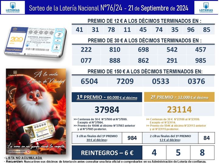 La Primitiva 1 5 10 14 20 33 37 42 45 R: 2